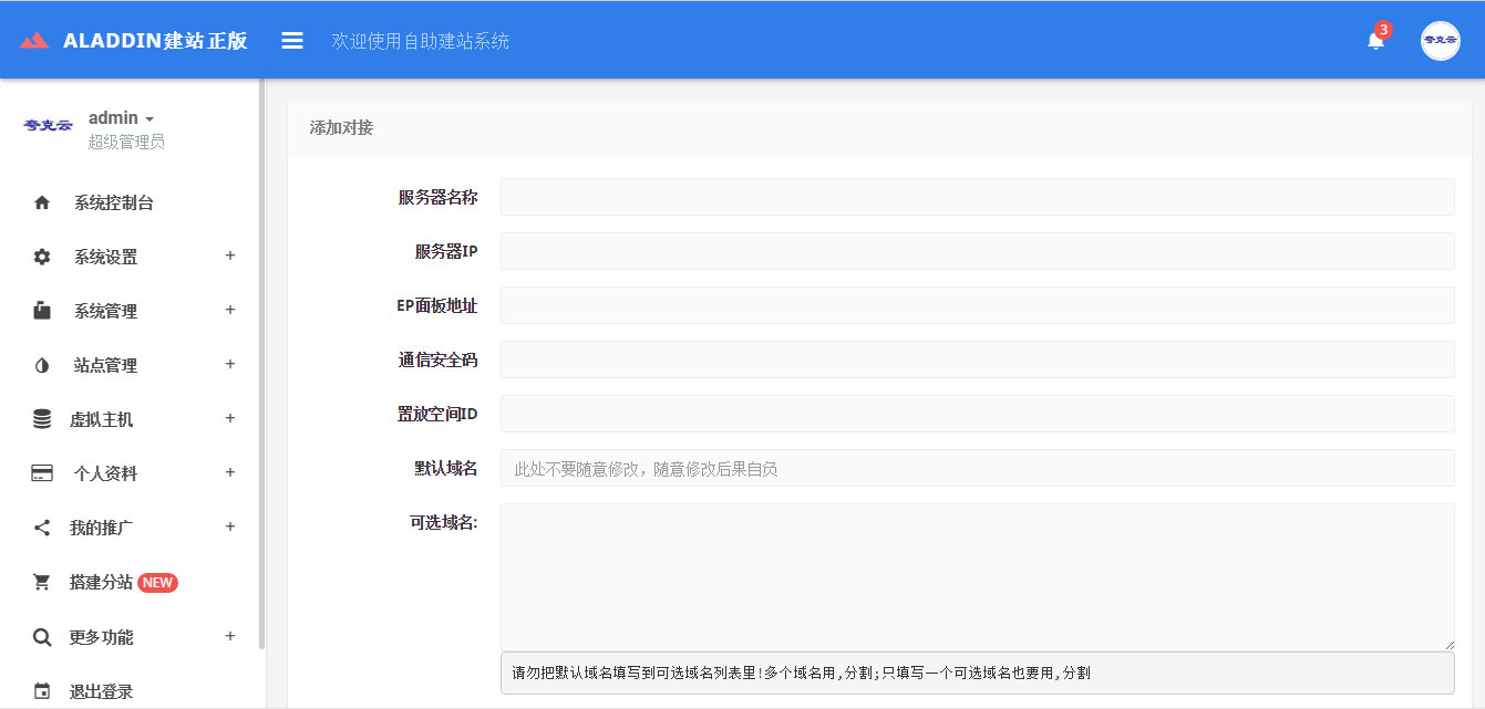 阿拉丁建站是二次开发我司的188建站系统,但未经过我方许可,为了避免不必要的纠纷,请标明版权,谢谢!