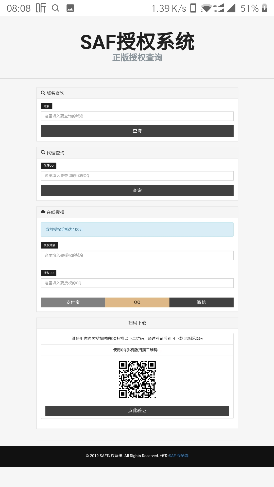 SAF自用的一款授权程序,现在开放购买,目标是打造一款全网最完善的授权系统,需要授权控制的老板不要犹豫赶快购买吧!